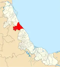 Veracruz lost a congressional district in the 2023 districting plan adopted by the National Electoral Institute (INE), which is to be used for the 2024, 2027 and 2030 elections.[6] The reconfigured 6th district covers 250 electoral precincts (secciones electorales) across 13 municipalities in the Totonaca region of the state:[7][8]