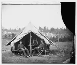 Assigned to duties in the vicinity of Brandy Station until early May 1864, the 72nd New York assisted with operations along the Rapidan River (February 6–7), and was then assigned to the Overland Campaign led by Lieutenant-General Ulysses S. Grant. After fighting in the battles of the Wilderness (May 5–7), Spotsylvania Court House (May 8–21), North Anna (May 23–26), Totopotomoy Creek (May 28–31), and Cold Harbor (June 1–12), the regiment also participated in the opening weeks of the Siege of Petersburg until its leaders received orders to begin winding down the regiment's operations. On June 20, Companies A, B, D, E, F, I and K mustered out. Companies C, G, and H were then transferred to the 120th New York Infantry. Company G was then officially mustered out on July 2, followed by Company C on July 20 and Company H on October 31, 1864.[5][6]