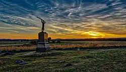 At the Battle of Gettysburg, it defended the Angle on July 2 and 3. On the evening of the 2nd, it helped defeat Confederate Brigade General Ambrose R. Wright's attack, advancing just over the stone wall. The next day, it was placed in reserve for the brigade near the copse of trees. During Pickett's Charge, its position served as a rallying point for the left wing of the 71st and two companies of the 106th Pennsylvania, which had been driven back. Despite Brigadier General Alexander S. Webb's best efforts, these troops refused to counterattack for several minutes. This might have been due to the 71st's colorbearers being shot down. (Civil War regiments often followed the regimental flag since orders would have been difficult to hear on the battlefield.) The regiment though, after realizing the error and miscommunication charged and plugged in the gap. At Gettysburg, Col. Baxter replaced the wounded General Webb in command of the Brigade, and Lt. Col. Hesser replaced him in command of the 72nd Regiment.