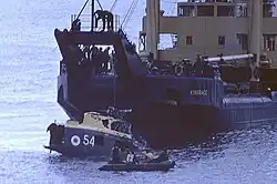 Westland Wessex HAS.3 of 737 Naval Air Squadron. Seen here being lifted from the ocean by the salvage vessel RFA Kinbrace following its crash on 15 July 1974 while on approach to RNAS Portland