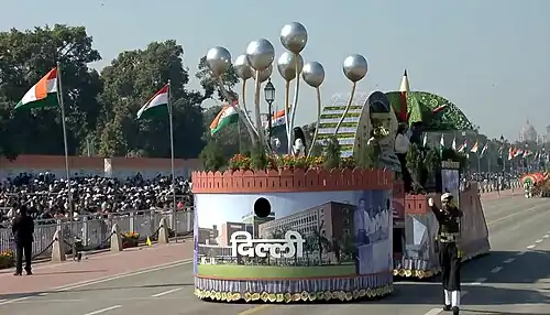 Delhi tableau at Republic Day Parade 2025 presenting education and innovation.