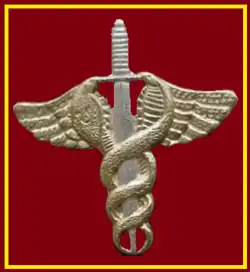 Unlike the rest of the SAMHS insignia, 7 Medical Battalion's caduceus insignia differs by virtue of it having a dagger instead of a staff.