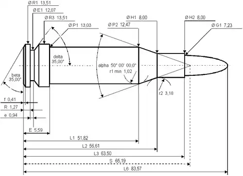| Shoulder diameter | .491 in (12.5 mm) | |||||||||||||||||||||||