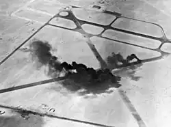 Following this, the squadron and wing engaged in active operations from April to July 1944. Operation Cockpit, which took place from 16 April to 19, involved air strikes executed by the Fleet Air Arm and United States Navy aircraft. These strikes targeted the harbor infrastructure, oil storage tanks, shipping vessels, aircraft, and facilities at Lho Nga airfield in Sabang, located on the island of Pulau Weh at the northern tip of Sumatra.[12] Operation Councillor took place from June 10 to June 13 as a strategic initiative in the Indian Ocean, aimed at redirecting Japanese attention from American military operations in the Marianas Islands.[13] Operation Pedal took place from June 19 to June 21 and included an airstrike initiated from aircraft carriers aimed at Japanese facilities located in Port Blair and several locations throughout the Andaman Islands in the Bay of Bengal.[13] Finally, Operation Crimson, which took place from July 22 to 27, involved a coordinated naval bombardment and aerial attacks aimed at Japanese airfields situated in the Indonesian cities of Sabang, Lhoknga, and Kutaraja on the island of Sumatra. Aircraft launched from carriers were instrumental in incapacitating the airfields and providing air support for the forces involved in the bombardment.[14]