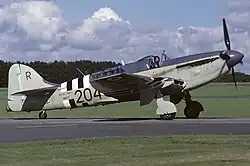 The Hawker Sea Fury marked the last use of a piston-engine fighter by the Fleet Air Arm in active squadrons, serving from 1947 until 1955. It was distinguished as the first British naval aircraft to incorporate power-folding wings in routine operations. The Sea Fury began its operational deployment in the late summer of 1947.[20]