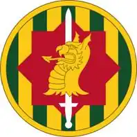 The 89th Military Police Brigade was originally activated as a "group", roughly the size of a modern regiment.[4] The 89th Military Police Group was constituted in the Regular Army on 19 February 1966[5] and activated on 15 March of that year in the Republic of Vietnam.[5] The mission of the 89th Military Police Group was to provide general military police support for the III Corps and IV Corps Tactical Zones.[6] The group stayed in Vietnam in support of the two corps' areas of operation. The Group received 15 of the 17 campaign streamers that could be earned for Vietnam service.[5] With the removal of US forces from Vietnam, the organization was inactivated on 21 December 1971.[5]
