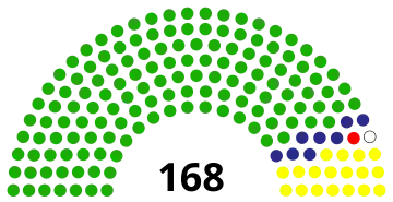 The UNP secured 140 out of 168 seats, gaining more than 83% of the seats in Parliament—a supermajority of over five-sixths. This was the largest parliamentary majority ever achieved in a Sri Lankan election. The SLFP, which had held 91 seats after the 1970 election, suffered a crushing defeat, winning only 8 seats. The Tamil United Liberation Front (TULF), advocating for Tamil rights and autonomy, emerged as the main opposition party with 18 seats, marking the first time a Tamil nationalist party held that role in Parliament.[9]