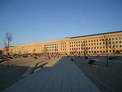 Since the Pentagon was struck after the World Trade Center, many who worked there did not think the attack would extend past New York City. A media relations specialist who was working in the building at the time recounted years later that she told a coworker, "This is the safest place to be in the world right now".[59] Another was on the phone with his wife and her sixth-grade class when the plane struck, stating the whole building felt like it had been completely lifted off the foundations. He hung up after stating, "We've been bombed, I have to go" before immediately starting to evacuate. Uncertainty about the type of attack led to many being cautious in evacuating with at least one security guard warning of potential shooters laying in wait, to gun down evacuees.[60]