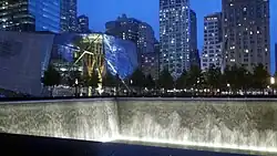 - 9/11 Memorial reflecting pool and One World Trade Center