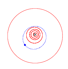 ![]() Orbits of Sandage (blue), the inner planets (red) and Jupiter (outermost) | |