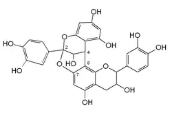 8. ^ Kondo, Kazunari; Kurihara, Masaaki; Fukuhara, Kiyoshi; Tanaka, Takashi; Suzuki, Takashi; Miyata, Naoki; Toyoda, Masatake (2000). "Conversion of procyanidin B-type (catechin dimer) to A-type: Evidence for abstraction of C-2 hydrogen in catechin during radical oxidation". Tetrahedron Letters. 41 (4): 485–488. doi:10.1016/S0040-4039(99)02097-3.