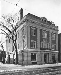 In April 1899, the club purchased the property from the Helen Niles estate, at the corner of Plympton Street and Massachusetts Avenue in Cambridge.[15] There, construction began on a new clubhouse in May 1900.[16] In September 1900, the club moved to its present clubhouse at 1 Plympton Street.[17][7][18] The club occupied the top two stories of the brick and stone building and rented the first floor to a music store and a tailor's shop.[19][7]
