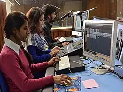 The AJK MCRC as a part of its social commitment and responsibility towards the community within which it is situated, runs a community radio station on 90.4 FM. Addressing itself to the residents of the Jamia area, RADIO JAMIA broadcasts educational, enrichment and a wide range of rich socio-cultural programmes. These programmes can be heard around a radius of 10 kilometres on the Jamia campus. Currently, the radio programmes are produced by the students and the faculty of the AJK MCRC in collaboration with different groups and organisation in Delhi.[3]