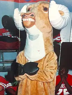 The school later purchased the costume of a ram for a new mascot, which was named "Rambo" after the protagonist John Rambo in the 1980s film series starring Sylvester Stallone. By 2001, the costume had suffered enough wear that a new Rambo costume was purchased.