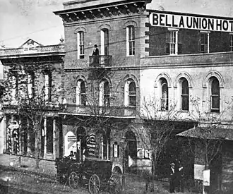 In 1865 there developed a conflict that came to be called the King-Carlisle feud. There are two stories of the origin of this feud, but the dispute festered between the friends and families of A.J. King and Robert Carlisle for some time. At a ball held in Los Angeles on July 5, 1865, Carlisle attacked A.J. King, and friends separated the men, with King suffering "a gash over the heart and a wound in his right hand." The next day, King's brothers, Frank and Houston, had a shootout with Carlisle inside the saloon of the Bella Union Hotel (owned by John King, another King brother); it resulted in the death of both Frank King and Carlisle. Houston King was charged with the murder of Carlisle, and A.J. King was released from his duties as undersheriff to assist in his brother's legal defense: Houston was acquitted.[13][14][15]
