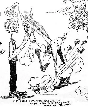 A horseracing-related comic strip seen daily on the sports pages, A. Piker Clerk gave readers a racehorse tip each day. The strip featured the exceedingly thin Mr. Clerk, a character with a gambling problem, who placed daily bets on a horse in the Chicago races each day. The following day Clerk's win or loss was posted, as described in Toonopedia by comics historian Don Markstein: