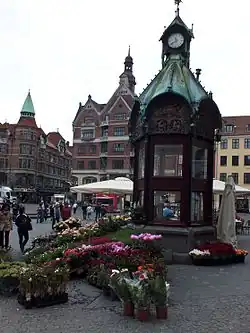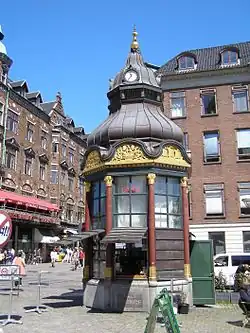 Jensen's telephone kiosks from 1913 are still seen in Nytorv, Kongens Nytorv and Nørre Voldgade but the two latter have been moved a little in connection with a redesign of the surroundings.[6]