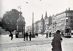 In 1989, it still only had 1,487 out of a population of more than 250,000 in the city. The need for public telephones was therefore evident.[1] On 3 September 1895, A/S Kjøbenhavns Telefonkiosker obtained a concession from the city magistrate on the installation and operation of up to 15 telephone kiosks in a 15-year period in Copenhagen.[2][3][4]