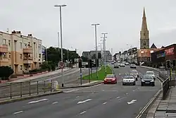 Starting at the Marsh Mills junction of the A38, the A374 heads west into Plymouth, following the course of the River Plym along a section of dual carriageway. At Prince Rock the A379 merges from Plymstock and continues into the city. On the edge of the city centre it meets the Charles Cross roundabout, in the middle of which stands the preserved shell of the derelict Charles Church. Skirting the Plymouth city centre to the north, the A374 continues past the main buildings of the University of Plymouth and is met by the A386 near Plymouth railway station. Going westward down the locally notorious Union Street, the road enters Devonport and comes to the River Tamar.[1]