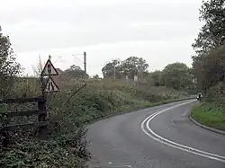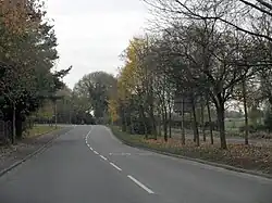After passing through the village of Withington Green, a lane passes off the east called Catch Penny lane which leads to Deans Rough Farm and a Catch Penny lake.[15] Further north is Farm Wood Quarry on its left, an area which the road passes which has had several notable geological examinations conducted into it.[16]
