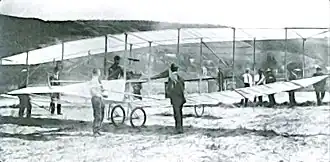 The White Wing (or Aerodrome #2) was an early US aircraft designed by Frederick W. Baldwin and built by the Aerial Experiment Association in 1908. Unusual for aircraft of its day, it featured a wheeled undercarriage. The wings were equipped with ailerons controlled by a harness worn around the pilot's body; leaning in one direction would cause the aircraft to bank to follow. The ailerons led to a legal dispute with the Wright brothers over the brothers' patent on movable wing surfaces.[1]