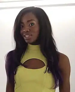 From September 2021, she was a competitor on the nineteenth series of Strictly Come Dancing, partnered with professional dancer Kai Widdrington.[20] They topped the leaderboard in their first week with a score of 34,[21] and again in week 7, when they scored 39 for their Charleston to "Don't Bring Lulu".[22][23] The couple also jointly topped the leaderboard in the semi-final, but were forced to withdraw from the competition on 17 December, the day before the final, after Odudu tore a ligament in her right ankle.[24][25]