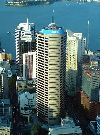 The ANZ Centre is an office skyscraper in Auckland, New Zealand.[2] Located at 23 Albert Street, the tower stands at 143 metres (469 ft) in height and has 35 levels of office space, with a total of 33,187 m2 (357,220 sq ft) floor space.
