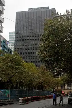 AON Centre (Royal Insurance Group Building) is a commercial office complex located in Melbourne, Victoria, Australia at 430—444 Collins Street, in the heart of the Melbourne CBD. A product of a rigorous design process from Australian architecture firm Yuncken Freeman Architects in 1962, the building undertook a two-year construction period and in 1965 it was first opened revealing a 70 metre high 18-storey structure.