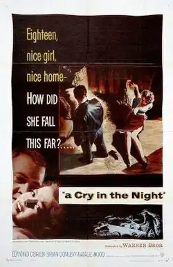 A Cry in the Night is a 1956 American thriller film noir starring Edmond O'Brien,[2] Brian Donlevy,[3] Natalie Wood[4] and Raymond Burr.[5] Based on the 1955 Whit Masterson novel All Through the Night,[6] it was produced and narrated by Alan Ladd[7][8][9] and directed by Frank Tuttle.