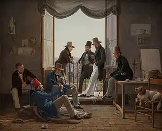 A Group of Danish Artists in Rome is an 1837 oil painting by the Danish Golden Age artist Constantin Hansen. The work depicts a group of Danish painters, architects, and other artists in a Roman hotel room; those painters depicted are Hansen himself, Michael Gottlieb Bindesbøll, Martinus Rørbye, Wilhelm Marstrand, Albert Küchler, Ditlev Blunck, and Jørgen Sonne.[1]
