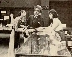 As described in a film magazine,[4] David Clary has big ideas on how to run a store, but John Clary, his crusty old dad, lets his business run downhill. David goes to the big city and while working as a clerk in a department store absorbs a few more pointers. He is also fleeced by a cabaret habitué (Young). Finally, his father sends for him to rejuvenate the "Emporium." By employing the town band and advertising, he fills the store with customers. The cabaret girl comes to town on the pretext of returning his watch and lures him to her hotel room. Here her fake husband (Ross) blackmails the young manager, but is exposed when he comes to collect $5000 from David by the corset model (Matthews), who swears that he is her husband. Selling out the store to a syndicate for a large sum saves David from bankruptcy and he takes his chief clerk and constant adviser Katherine Farrell (Novak) as his life partner.