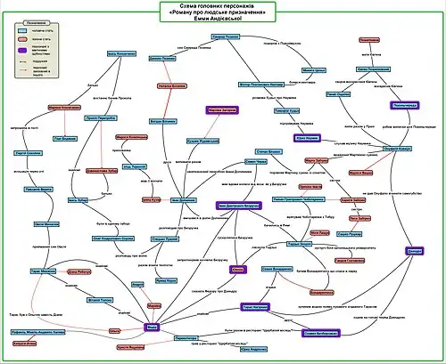 A novel about human destiny is an epic magic realist novel by the Ukrainian writer Emma Andijewska written by the author from 1970 to 1980 and first published in 1982. The novel tells the stories of the lives of Ukrainians who found themselves in emigration. The work is distinguished by having over 500 characters and the length of the sentences, which reach several pages.