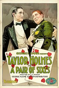 A Pair of Sixes is a 1918 American silent comedy film directed by Lawrence C. Windom and starring Taylor Holmes, Robert Conness and Alice Mann.[1]