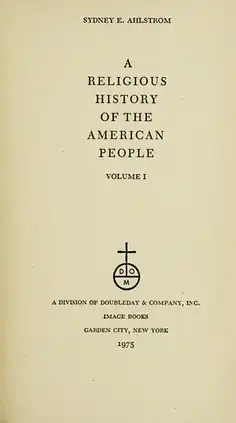 A Religious History of the American People (1st edition 1972, 2nd edition 2004) is a book by Sydney E. Ahlstrom and published by Yale University Press.[1] The first edition was 1,158 pages in length, the second 1,192. The book has been widely reviewed and well-received, including positive mentions in both Christianity Today and Christian Century. The book has been noted for its readability, accuracy, and importance.