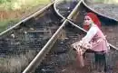 ![]() Reenactment of Eva sitting on the railroad tracks (taken from the film) | |
