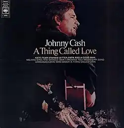 A Thing Called Love is the 39th overall album by country singer Johnny Cash, released on Columbia Records in 1972 (see 1972 in music). The title song, written by Jerry Reed, was released successfully as a single (with "Daddy" as the B-side), reaching No. 2 on the country charts; two more singles charted as well, while the album itself also reached No. 2 on the country album charts. "A Thing Called Love" was re-recorded by Cash for Classic Cash: Hall of Fame Series (1988), while "Tear Stained Letter" was reprised on American IV: The Man Comes Around (2002). The Canadian pressing of this album has a different version of "Kate" with altered lyrics.