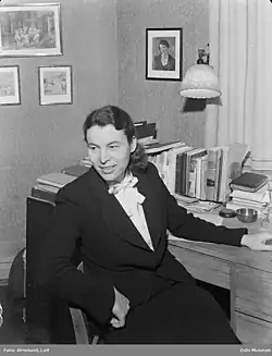 During the lengthy period she spent at home as a housewife, she became active in Norway's women's organizations. In 1945 she was elected chair of the Oslo branch of the Norske Kvinnelige Akademikeres Landsforbund, an association linked to the International Federation of University Women.[4] From the late 1940s and for the next 15 years, she became a frequent broadcaster on foreign affairs, especially in connection with China and East Asia. After travelling through East Asia in 1957, she made an extensive series of detailed reports on NRK radio.[1][2] She also published her impressions of Japan in Japan, soloppgangens land (Japan, land of the rising sun, 1957).[1]