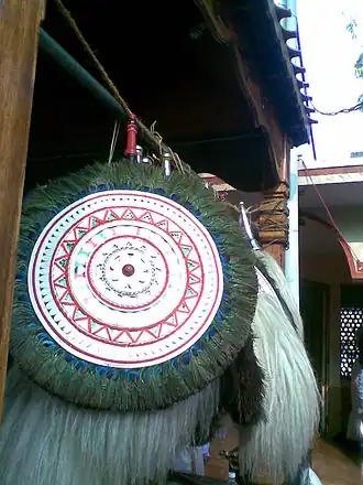 Aalavattam (Malayalam: ആലവട്ടം from Sanskrit आलावर्ता) is a special decorative circular shield or fan that is held beneath both sides of respectable idols, deities or mythological characters during festivals and dances, especially in the state of Kerala in South India.[1] The object is peculiar to the state of Kerala in India and the name originates from Malayalam (ml).[2]