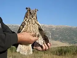 The swamp lies on one of the most important bird migration routes in the world, and over 250 species of birds have been recorded in the area,[2] including the globally vulnerable greater spotted eagle (Aquila clanga), eastern imperial eagle (Aquila heliaca), and lesser kestrel (Falco naumanni). Records of globally near-threatened bird species at the wetland include great snipe (Gallinago media), ferruginous duck (Aythya nyroca) and pallid harrier (Circus macrourus). In addition to the diversity of birds in the area, there are a variety of animals living in and around the marsh. Twenty-three species of mammals have been recorded, including jungle cat (Felis chaus) and European otter (Lutra lutra). Five species of amphibians and twelve species of reptiles have been recorded, and a two-year weekly butterfly survey found fifty-three species of butterflies in the area. The wetland lies 7 km SSW of the city of Qab Elias on the eastern edge of Mount Lebanon. The main area of reedbeds and open pools covers 253 ha, stretching east from the foot of the mountains to the Litani River in a long strip. Rain and snow falling on the high ridge of Barouk mountain to the west provide water for the wetland. Surrounding the open water and reed bed are areas of rough grazing, cultivated land, drainage ditches, and an avenue of trees, all adding to the diversity of habitats in the area. On the nearby mountain slopes, small wooded areas and rocky shrubland give an even greater variety of habitats and species. Behind the nearby village of Aammiq are woods where Syrian woodpecker (Dendrocopus syriacus) and Syrian serin (Serinus syriacus) can be found. In spring and summer, shrubby hillsides are home to assorted buntings, wheatears, warblers and shrikes, and rocky gorges host western rock nuthatch (Sitta neumayer) and Eurasian eagle owl (Bubo bubo). Mammals present include Caucasian squirrel, wildcat, wild boar and the Indian porcupine.