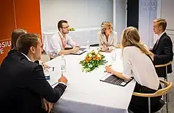 Aarhus Symposium is an annual leadership conference taking place at the University of Aarhus, Denmark, on the first Friday in November. The aim of the event is to connect leaders of today with leaders of tomorrow.[1] To do so, a wide range of key decision-makers are invited to share their experiences and engage in discussions with students from various universities. Hereby, the symposium allows students to relate their academic insights to the broader business society.[2]