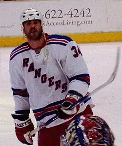 Aaron Voros (born July 2, 1981) is a Canadian former professional ice hockey player. Voros played in the National Hockey League with the Minnesota Wild, New York Rangers and Anaheim Ducks between 2007 and 2011. He served two consecutive years as the team president of the NHL Players Association for the New York Rangers and one year for the Anaheim Ducks.