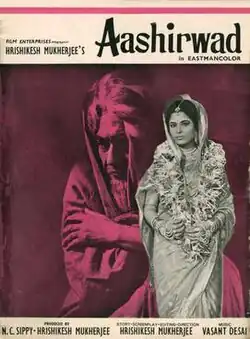 Aashirwad (transl. Blessing) is a 1968 Bollywood film, directed by Hrishikesh Mukherjee. The film main stars Ashok Kumar, Veena (actress), Sumita Sanyal and Sanjeev Kumar. The film is notable for Ashok Kumar & Veena (actress) life time performances and its also inclusion of a rap-like song performed by Ashok Kumar, "Rail Gaadi" & "Nav Chali".[1]
