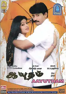 Aayudham (transl. Weapon) is a 2005 Indian Tamil-language action film directed by M. A. Murugesh. It stars Prashanth and Sneha, while Vadivelu, Subbaraju, Rajesh, and Janagaraj play supporting roles. Featuring music composed by Dhina, the film was released on 14 January 2005 and was a box office failure.