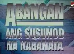 Abangan ang Susunod Na Kabanata (English: wait for the next chapter) is a Philippine television satirical sitcom show broadcast by ABS-CBN. Directed by Johnny Manahan and Ipe Pelino, it stars Tessie Tomas, Nova Villa, Noel Trinidad, Anjo Yllana, Roderick Paulate and Carmi Martin. It aired from January 16, 1991, to June 17, 1997, and was replaced by !Oka Tokat. It was re-aired on Jeepney TV. A sequel sitcom called Eto Na Ang Susunod Na Kabanata aired with some of the actors reprising their roles.[1]