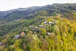 Abanoeti (Georgian: აბანოეთი), formerly also known as Mikartsminda (მიქარწმინდა), is a village in Georgia’s northern Ambrolauri Municipality (Racha-Lechkhumi and Kvemo Svaneti region) with a population 102 (2014).[1] It is located about 11 kilometres (6.8 mi) west of the municipal center Ambrolauri, at an elevation of 820 metres (2,690 ft) above sea level on a hill overlooking the Rioni River. It is part of the Bugeuli administrative community (თემი, temi) that includes 5 more nearby villages.[2]