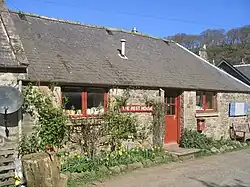 Further up the valley north of the Kirk is the village hall which holds regular events and occasional exhibitions. Downriver, south of the Kirk can be found a fish farm, car park, café and small sawmill.