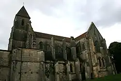 The abbey church was built in 1225 by the Abbot Olivier, but destroyed by fire in 1255. The buildings were not reconstructed until the 14th and 15th centuries by the abbots Jean de Blaisy and Pierre de Fontenette. The Gothic church is almost all that survives of the abbey buildings. The nave consists of four bays, with side chapels. The west front, comprising a porch between two towers, is of the 15th century, as are the 22 frescoes in the choir depicting the life of Saint Seine, while the choir stalls are of the 18th century.
