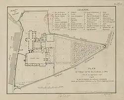 Notre Dame du Val des Écoliers was a monastery of Augustinian canons regular in the city of Mons, Belgium, founded as a priory in 1252 at the invitation of Margaret, Countess of Hainaut.[1] It became an abbey in 1617 and was suppressed in 1796, during the French period.[2] The buildings were later used as an arsenal, a meeting hall, a warehouse, a factory, and a hospital, but were allowed to decay into considerable disrepair.[2] Most of the old buildings were demolished in 1876, but one tower remained and was restored in 1892. It was classified as a monument in 1955 and is now a landmark.[2] The monastic ruins were investigated by archaeologists in 2021 prior to being cleared to make way for an underground carpark and office space.[3] Initially expected to last a month, the dig would ultimately run from March to July, and exhumed about sixty sets of human remains dating from the 14th and 15th centuries.[1]