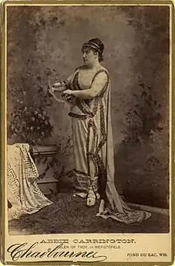 Abbie Beeson Carrington Lewys (June 13, 1856 – April 8, 1925) was one of America's leading coloratura sopranos of the 19th century.[1] When the Grand Opera House opened in Oshkosh, Wisconsin, for the first time on August 11, 1883, Carrington sang the title role in The Bohemian Girl.