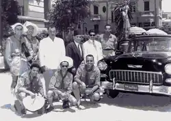 ![]() Tunisian Scout delegation to Alexandria in July–August 1956. Abdallah Zouaghi is the third man standing from the left. Standing from left to right: Rachid Sfar, Abdelaziz Bel-Hadj Taieb, Abdallah Zouaghi, an Egyptian guest, Azouz Rebai (first undersecretary of state of youth of recently independent Tunisia) then an Egyptian Scout chief. Sitting Scout leaders Abdelazir Triki, Taien Nouira and Abdelmajid A. | |